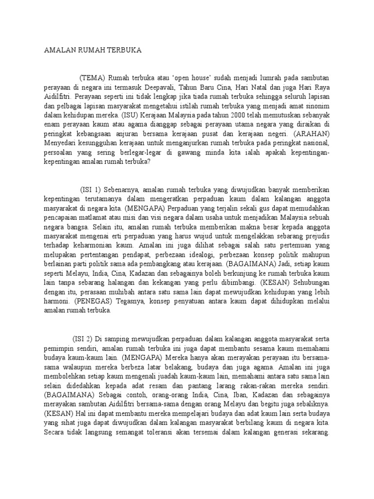 Contoh Karangan Spm Kepentingan Amalan Rumah Terbuka